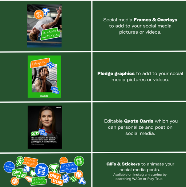 Precis som tidigare år finns brandade mallar för att engagera så många intressenter som möjligt, så att deltagarna kan använda och dela sina egna #PlayTrueDay-foton och -videor.